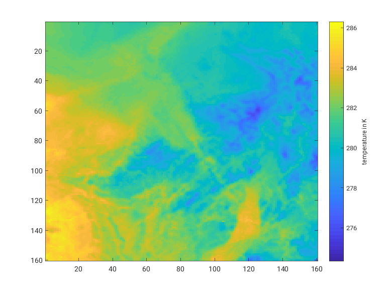 Fig. 1: Temperature as supplied by the COSMO model: The coarse data.